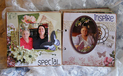 The vintage lady, flowers and clock I have fussy cut from the patterned papers and then raised the lady up with dimension tabs.